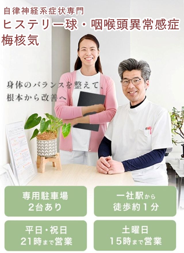 ヒステリー球(咽喉頭異常感症・梅核気)が気になる方は一度、 一人で悩まず当院に相談ください。