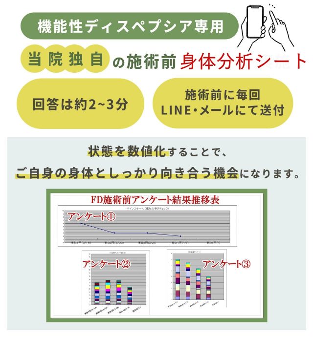 独自の機能性ディスペプシア専用の身体分析シートの実施